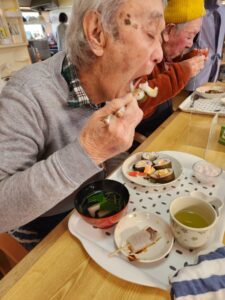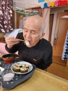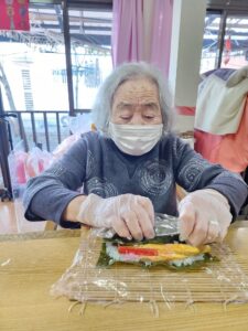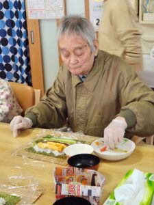 途中で具材だけ食べてしまうかなーと心配している利用者さんもいましたがそんなことはなく一生懸命に皆さん集中して作ってらしました🎵