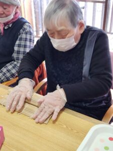 今年も何日かに分けて恵方巻つくり、豆まきを行いました😍